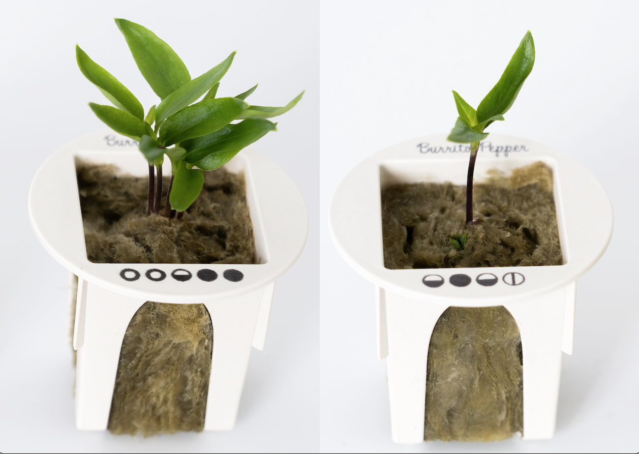 Fruiting plant yCube, sprout unselected (left) and sprouts selected with 1 sprout remaining (right)