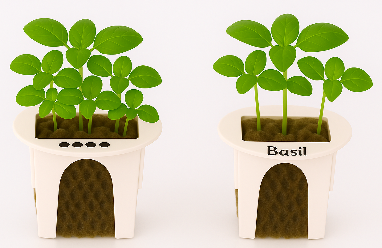Basil yCube, sprouts unselected (left) and sprouts selected with 3 sprouts remaining (right)
